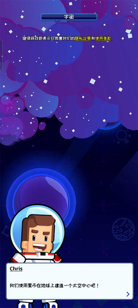 进入游戏后,使用初始星币在地球上建造首个太空中心;