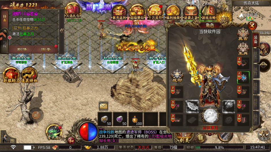 5、新服开服必抢【激情BOSS】——全屏掉落、手速为王,百万灵符轻松入袋,快速起号就靠它!