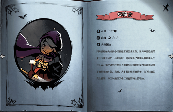 女骑士|以拳代言的守序者 被欺凌中长大的小红帽,用蛮力与果决赢得守卫长授勋。巡逻骑士的身份,是她守护小镇的第一道防线。