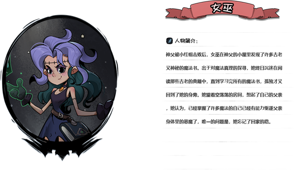 女巫 在神父废墟中拾起古老魔法书的求知者。当知识填满书架,孤独却悄然回归——她想驱逐父亲体内的恶魔,却早已迷失归途。