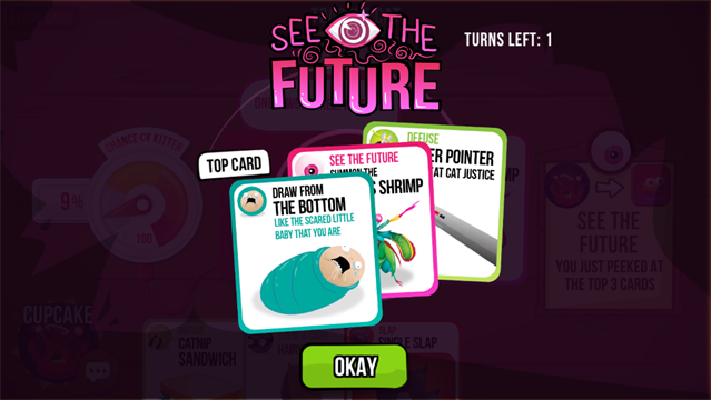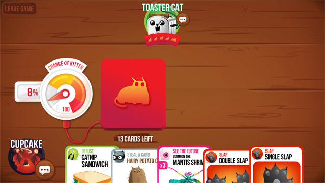 这是一场高能卡牌生存挑战:每位玩家轮流抽牌,目标只有一个——避开那张致命的「爆炸猫」!抽到即“飞天出局”,但别慌——道具卡就是你的救命稻草:跳过、偷看、藏炸弹、甚至把危险甩给隔壁玩家……策略布局+临场判断+一点欧气,缺一不可。支持2–4人同局竞技,本地热座或在线联机,随时开启爆笑对决。