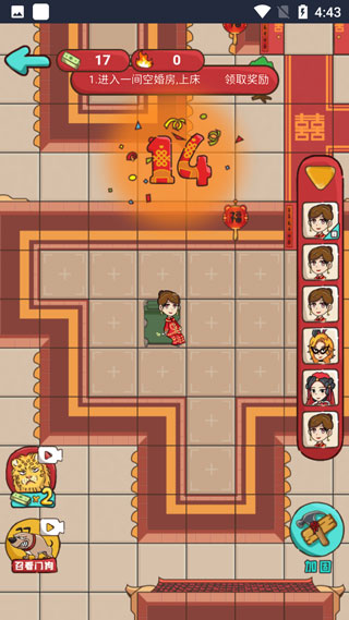 支持实时在线匹配 or 本地同屏联机,和好友组队守门or互相扮演新郎突袭对方房间——合作与背叛只在一念之间!内置“敬酒突击”“伴娘干扰”“红包雨乱斗”等原创竞技模式,通关解锁限定婚纱皮肤、搞怪头饰、动态特效等丰富内容,让每一次防守都充满新鲜感与社交张力。