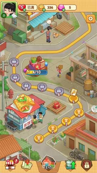 通关即奖励——金币夯实经营根基,钥匙开启新关卡。随着进度推进,你将解锁步行街、美食城、环球风味区等全新地图,每个区域不仅带来视觉焕新,更对应独有菜系(如中式煎饼→美式汉堡→日式玉子烧→法式可丽饼)、专属厨具与差异化客流。升级不是数值堆砌:煎锅升级缩短摊制时间,豆浆机提速让饮品供应不再卡点,烤箱扩容支撑套餐组合——每一笔投入,都直接反馈在顾客等待时长缩短、满意度飙升、口碑值跃升上。