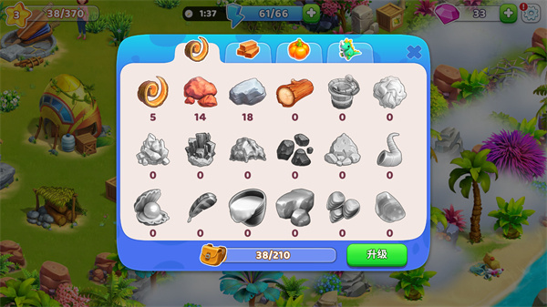 背包系统清晰展示所有材料数量与等级,支持一键升级工具与设施,让生产力稳步跃升。