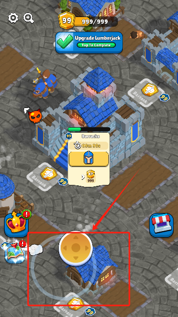 2. 使用左侧虚拟摇杆操控国王巡视领地,右侧按钮释放技能或打开菜单;