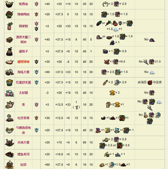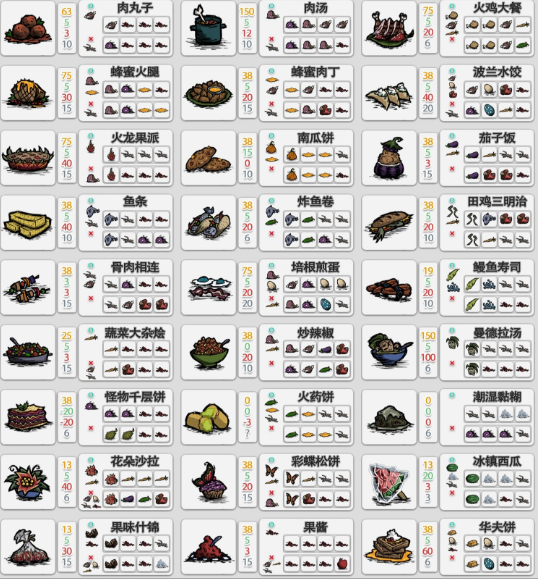 食疗黄金组合:蝴蝶松饼(回血20+饱食37.5+SAN5)、培根煎蛋(回血20+饱食75)、蜜汁火腿(回血30+饱食75),按阶段切换,避免属性溢出。