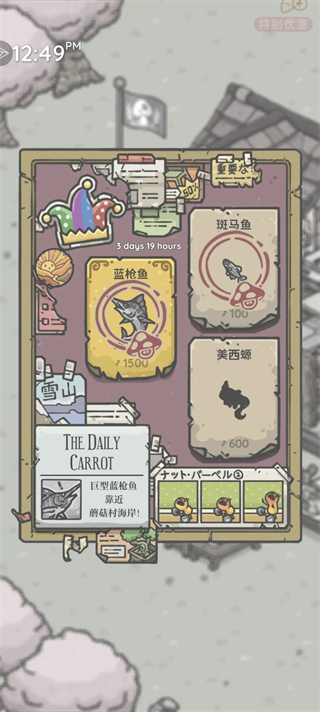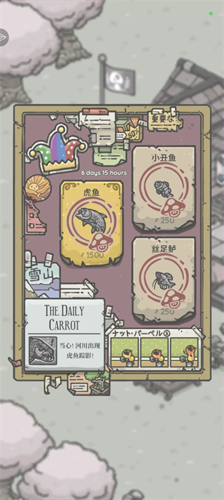 钓鱼是蘑菇村最具仪式感的休闲活动,也是发现世界秘密的核心入口。全图共设三大渔点——码头、冬安工具店旁、萝丝花店旁,随游戏天数逐步开放。需先购入鱼竿方可垂钓;普通鱼稳定产出,而11种「神秘鱼」则严格限定出现时间与地点(如上午09:50在码头邂逅伊氏石斑鱼,下午20:02于码头挑战终极Boss「龙王」),需紧盯布告栏报纸提示。特别提醒:同一钓点连续使用会降低上钩率,生态平衡机制让每一次出钓都充满策略考量——偶尔还能意外收获一整袋胡萝卜!遇到难题?别忘了请教村里公认的钓鱼大师尤里。