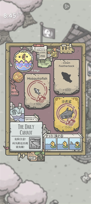 ● 去钓鱼:购竿后湖边垂钓,点击水面“?”图标触发随机事件;