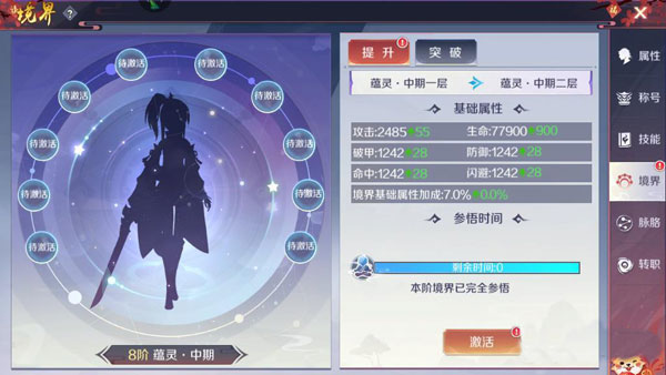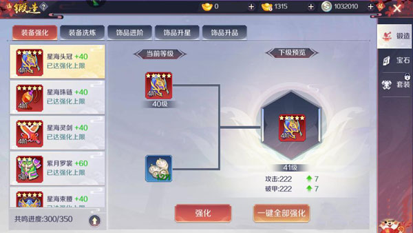 强化:基础属性提升最直接方式,银币消耗低,共鸣进度激活后额外加成;