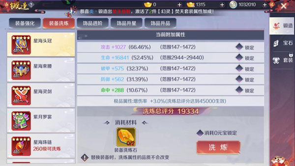 洗炼:重铸属性品质,白→蓝→紫→金层层突破,绑定元锁住极品属性防丢失;