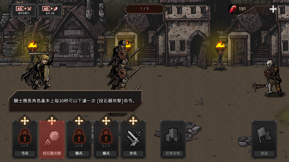 5、战略打击:骑士团长每30秒可下达一次【投石器攻击】指令,对敌方密集阵型实施范围压制;