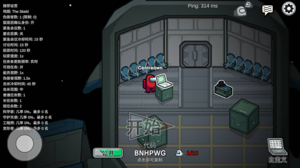 3、灵活配置房间参数:可设定人数上限、任务难度、紧急会议冷却时间、是否启用语音等;