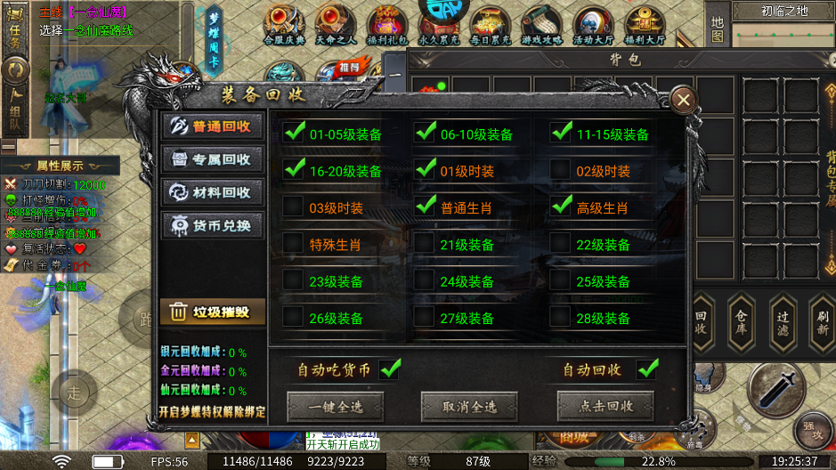 打怪掉落的未绑定装备,全部支持一键回收→兑换灵符!灵符可购稀有材料、强化石、攻速符文,刷得越多,赚得越稳。