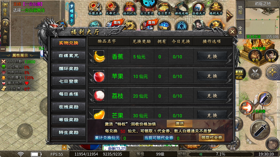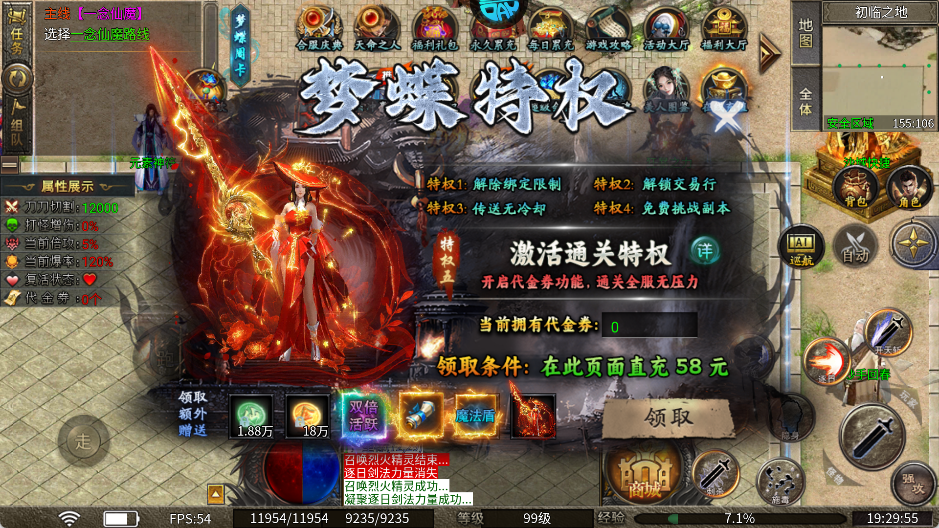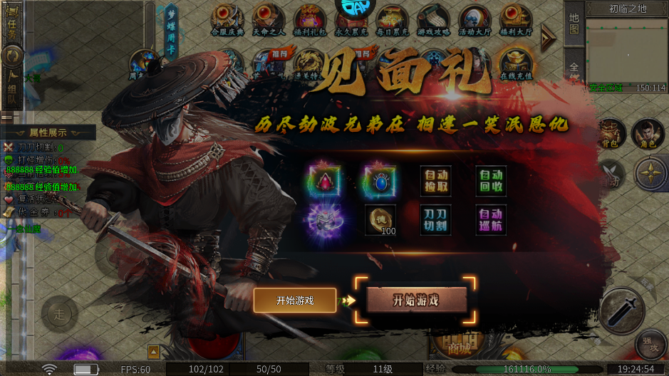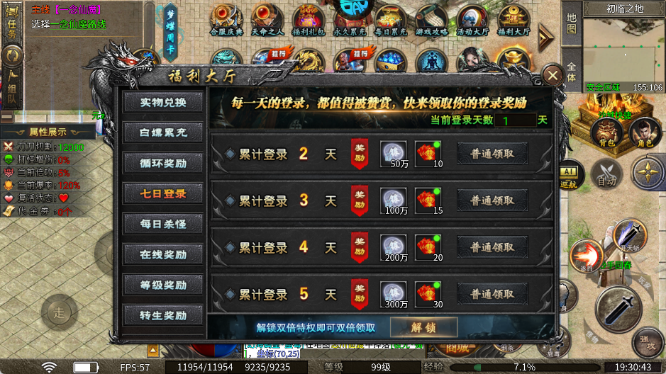 首次登录即领超豪华开服大礼包:高级转生丹×5、攻速宝石套装×1、绑定元宝×8888,助你0氪起步、轻松越阶!