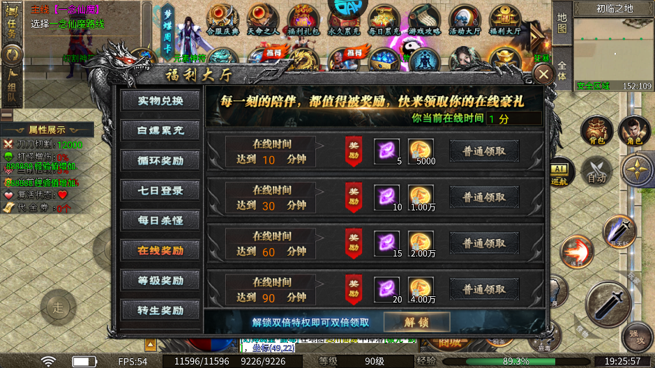 挂机不白忙!累计在线达10/30/60分钟,即可领取海量充值货币(非绑定元宝),边挂机边赚钱,收益实时到账!