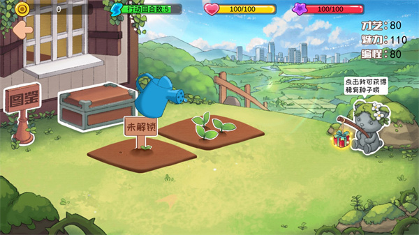 6、细心照料不可少:按时浇水、定期施肥、及时除虫……见证幼苗抽枝展叶,直至丰收时刻一键收割,收入入账+图鉴点亮同步达成!