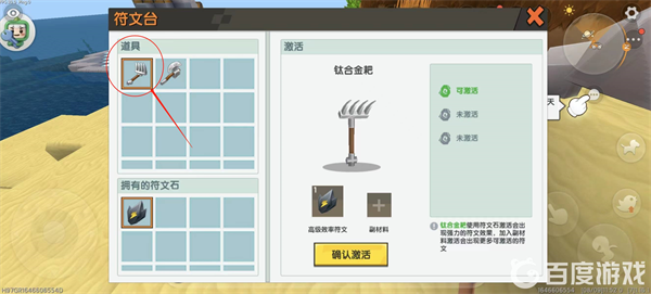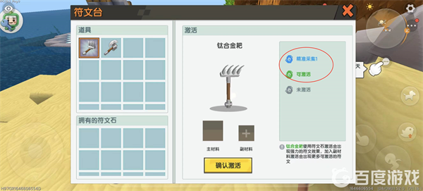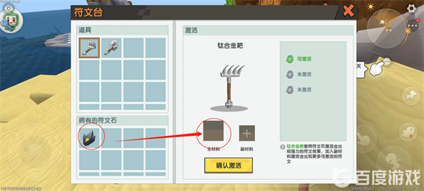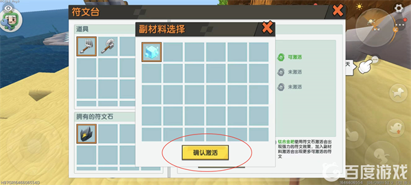 五,副材料选用「创造水晶」增强附魔稳定性,确认后点击「激活」;