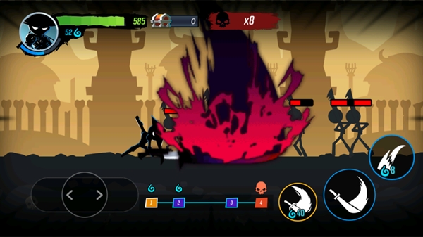 摒弃廉价简笔画印象,本作以高对比度暗黑美术风格重塑火柴人宇宙:浓重阴影勾勒凌厉身姿,粒子光效伴随每一次踢腿、格挡与终极必杀炸裂屏幕。跳跃可空中追击、滑铲能瞬移闪避、受击带物理反馈震屏,配合智能摇杆+双键布局(左摇杆移动/右键攻击+回避),零学习成本,却有无限操作上限——指尖所至,拳风呼啸,连招如行云流水。