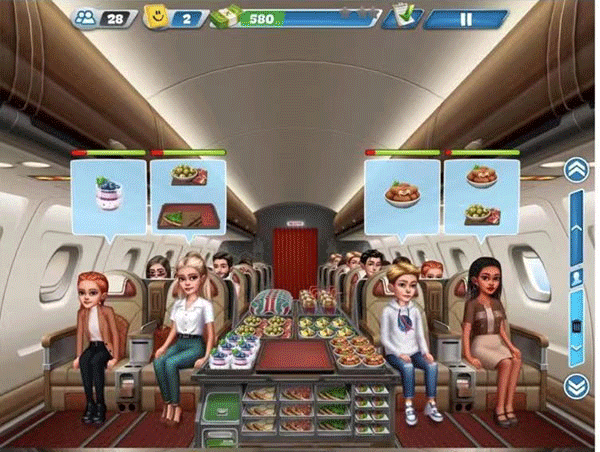 ✔ 真实感拉满的航空餐饮生态——从机舱布局、乘客行为逻辑到地域菜系差异(如洛杉矶新增豆腐煲+素奶昔),每一处细节都在致敬真实航空服务标准。