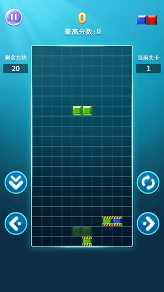下落模式:还原最正统的俄罗斯方块操作逻辑,通过方向键精准控制方块旋转与下落,单次消除行数越多,连击得分越爆炸;