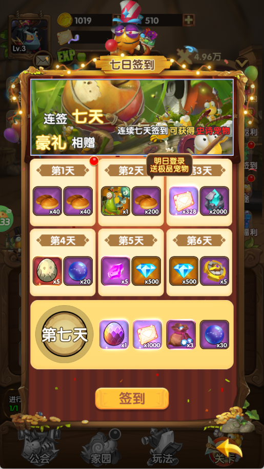 每日登录稳稳拿奖:首日送神话宠物自选权,连续7天豪礼不断,累计狂送1000+代金券、稀有魂石、进阶丹等核心资源,轻松解锁高阶养成线。