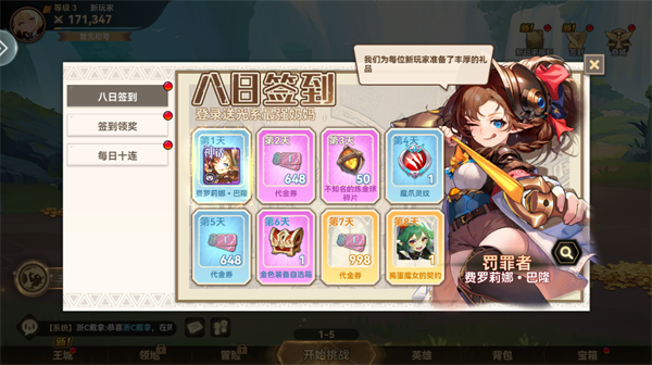 八日签到,直送神话英雄 新号登录即领顶级战力锚点——神话级英雄“费罗莉娜・巴隆”,附赠海量代金券、金色装备自选箱,首周即可组建成型主力阵容,轻松跨过前期战力门槛。