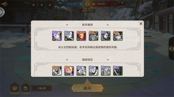 新手推荐阵容:冰公主+射手黄金组合 冰公主提供群体减速+能量加速,大幅提升队伍出手频率;射手专注后排稳定输出,两者配合可快速压制敌方核心单位,是新手前30关最顺滑、最易成型的通关方案。