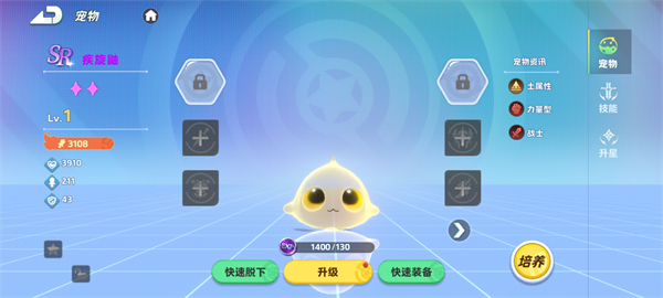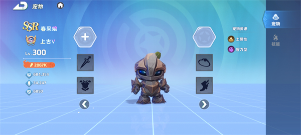 等级与属性:初始为1级,土属性,力量型宠物,职业定位是战士。在战斗中,力量型的设定让它在物理输出方面有着一定的潜力,适合冲锋陷阵,承担输出伤害的职责。