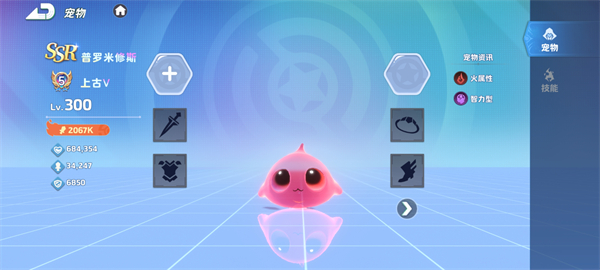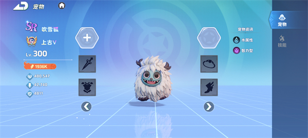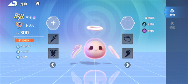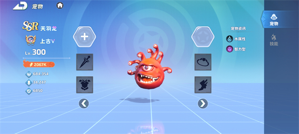 等级与属性:水属性,智力型宠物。其独特的外形可能暗示着拥有强大的法术能力,水属性在技能效果上或许会有冰冻、减速等控制效果,能在战斗中为团队创造优势。