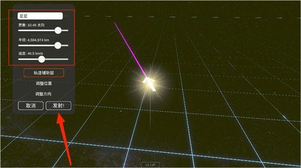 在“新建星系”模式中,你就是创世者——点击右下角星系按钮,即可开启完全自由的天体工程:在三维坐标网格中精准定位恒星位置,拖动红色箭头设定初始运动方向,再精细调节质量(决定引力强度)、半径(影响视觉体积与密度)、自转速度(生成昼夜与赤道隆起)等核心参数。一键发射后,新天体即刻遵循牛顿万有引力定律运行;多体系统形成后,你将直观看到轨道共振、摄动偏移甚至引力弹弓效应——所有现象无需脚本,全部由底层物理引擎实时计算生成。