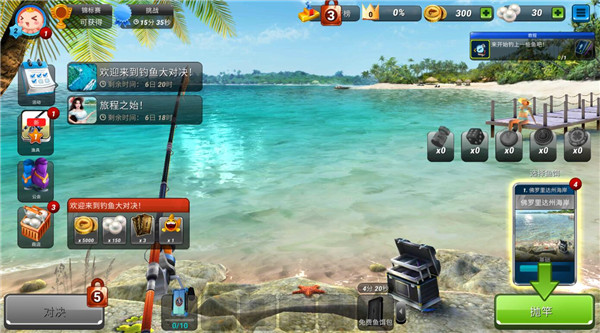 返回渔具店,领取每日登录、赛事排名、公会任务等多重道具奖励