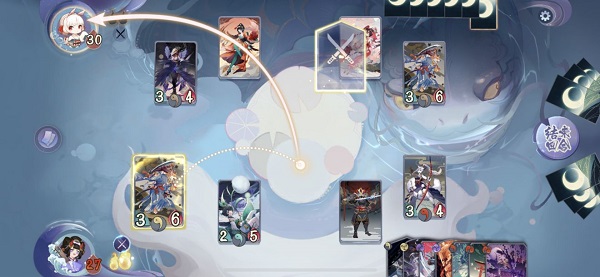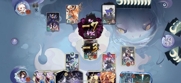 每回合分为「回合开始→抓牌→出牌→结束」四个阶段:起始获得鬼火(先手首回合限1点)、抓1牌(手牌上限12张)、可升级1名式神(后手第3回合/先手第7回合享额外升级)、自由使用卡牌或指派式神出击(每回合仅1次主动出击)。式神出击即自动交战:若敌方战斗区有单位则相互伤害,否则直击牌手。生命归零进入「气绝」状态(3回合后复活,期间无法行动且失去形态),而护甲、破甲、贯通、远程等词条进一步拓展战术维度,让每一手操作都蕴含多重博弈可能。