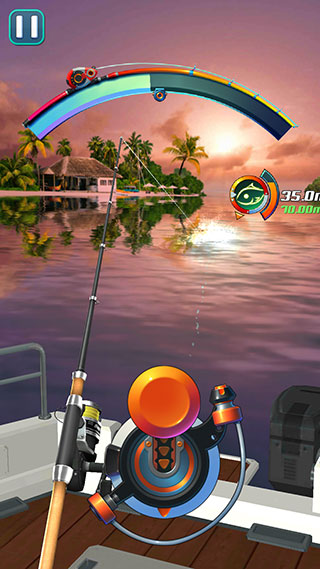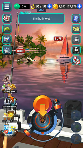 无需复杂教程:向下拖动红色抛竿按钮控制力度与角度,松手时机精准落在进度条高亮区可触发“黄金抛投”Buff;当屏幕闪现“HOOK”提示,3秒内快速拖拽完成刺鱼;随后进入紧张刺激的遛鱼阶段——通过左右微调收线节奏,避免拉力过载导致断线,全程进度条实时显示鱼体挣扎强度,策略与手感缺一不可。