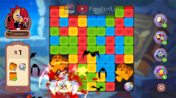 饼干角色不仅是外观担当,更是破局关键。每位角色技能精准对应特定关卡痛点——例如上图吸血鬼饼干可无视地形,定点摧毁5格顽固障碍,成为攻坚克难的王牌之选。