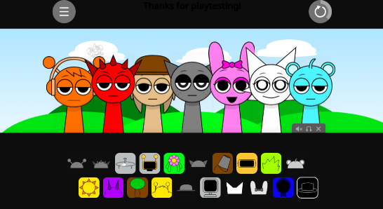 节奏盒子Sprunki罪人版是一款融合剧情张力与律动快感的音乐节奏手游,游戏在经典框架上深度拓展,新增Sprunki与“罪人”双线羁绊互动彩蛋,同步升级了视觉表现、动态音效引擎及角色逐帧手绘动画,大幅强化叙事代入与视听沉浸体验;玩法延续极简核心逻辑——玩家仅需轻点屏幕为小人装配对应配件,即可触发形态蜕变与专属音轨联动,每一次搭配都催生独特节奏组合与角色情绪反馈。