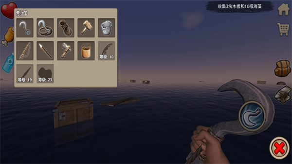 建造锤:木筏扩建核心工具,决定你能否铺地板、建二层、搭屋顶;合成:5木板+2废铁;