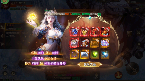 ② 登录即升VIP8,立刻领取6480金币+神宠+8阶坐骑+时装礼包,战力直接跃升一个梯队;
