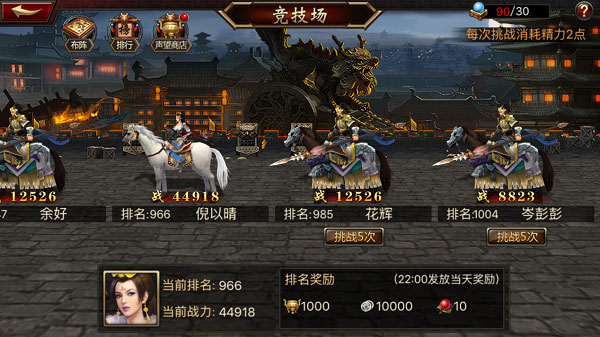开服即启的高强度PVP战场,挑战名次相近的对手,胜者晋升、败者蓄势,全程公平匹配。历史最高排名直接发放元宝大奖,每日结算按段位精准派发海量资源;战胜可重复挑战5次刷取声望,声望点数不仅兑换橙装、红将碎片,更能直购稀有橙将——实力进阶,每一步都有回报。