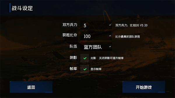 4、手动设置双方初始兵力、获胜所需比分及所属阵营(红方/蓝方),确认无误后点击“开始游戏”;