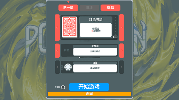 2、选择牌组、牌套和难度,点击开始游戏;