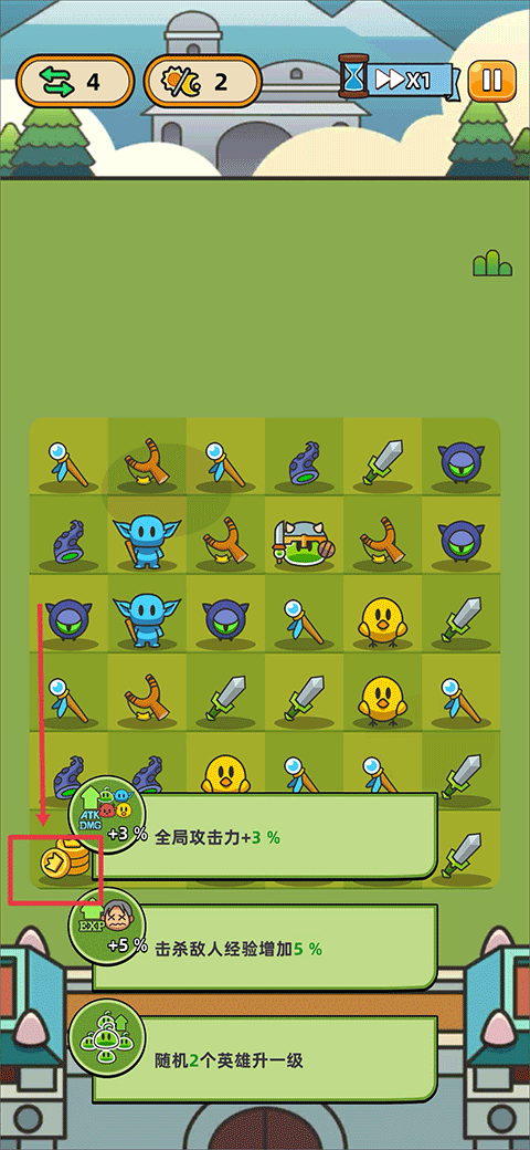6、点击单位即可升级:攻击范围、伤害数值、攻速阈值全面提升,养成路径清晰直观;