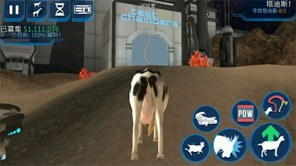 解锁实验室后,完成四大实验:①将奶牛放上平台;②绕至左角触发玻璃门;③围牛绕圈激活引力场——光效炸裂,银河加冕!