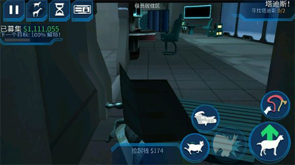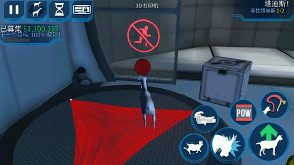 舔舐右侧“儿子粑粑”旁的发光物体,触屏拖动即可操控原力——注意:此时山羊本体完全静止,全靠意念推人砸墙,沉浸感拉满。