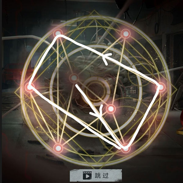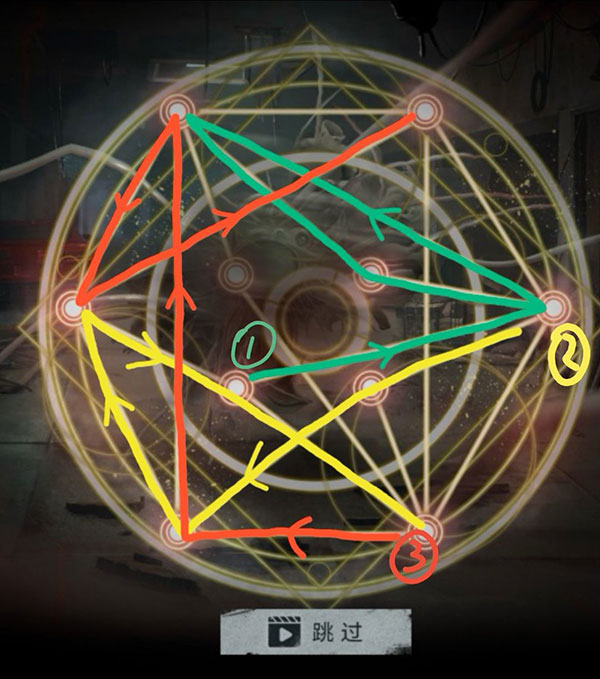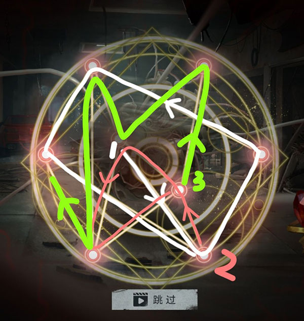 第五章迎来高难度操作关卡——卡洛琳的魔法阵。玩家需在共享时限内,以“一笔画”方式完整描摹三幅复杂图形,路径不可重复、不可中断。新手易卡关?我们为你拆解最优路径: