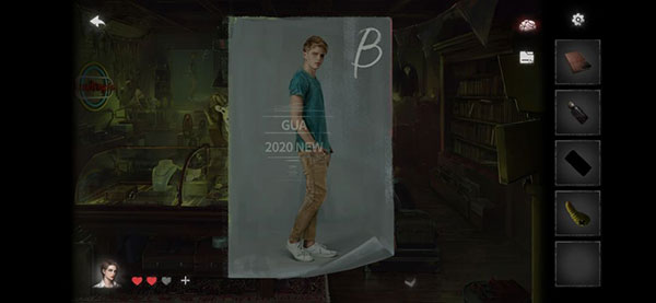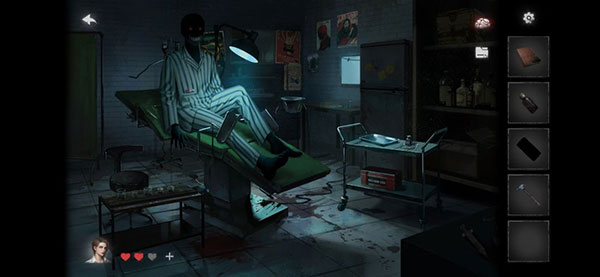 6. 书店内门开启:用围巾缠绕红色柱子触发机关;再依【线索2】数值(腹痛10/胸20/头25盎司)向病人口袋注入液体,取得红色ID卡及羊角锤;