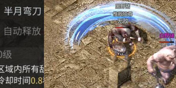 半月弯刀:横向扇形范围攻击技能,对身前所有目标造成高额伤害,是战士少有的高效清怪与切入团战的群体输出手段。