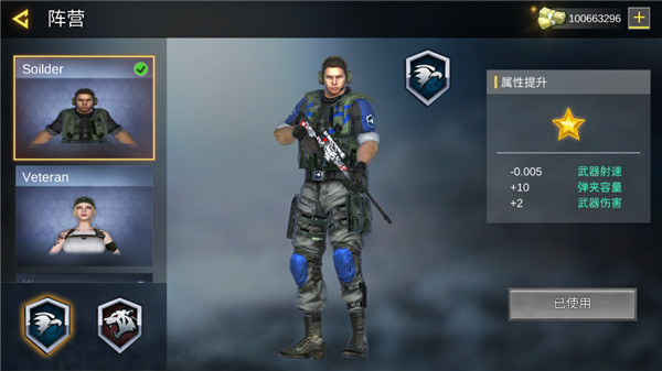 3、点击“阵营”入口,查看当前开放的两大阵营,每个阵营含三名特战角色,部分角色需消耗游戏内货币解锁;