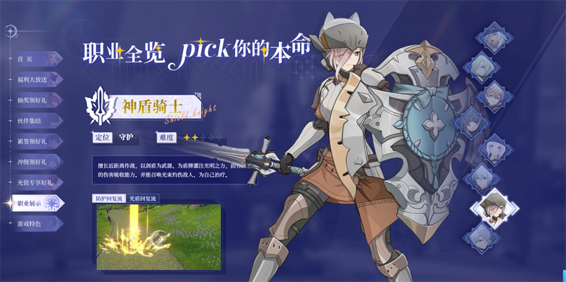 擅长近距离作战,以剑盾为武器。为盾牌灌注光明之力,拥有稳定伤害吸收能力;可召唤光束灼伤敌人并实现自我治疗,兼具防御与反打能力。