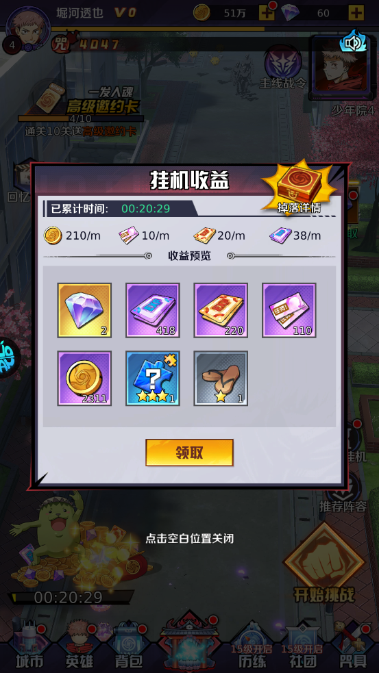 6、通过招募系统持续扩充队伍,合理搭配输出、辅助与坦克角色,打造专属最强咒术小队;