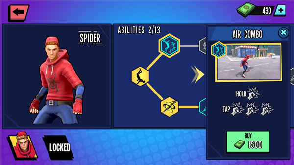 积累足够金币后,务必前往【技能工坊】为当前角色解锁进阶技能或升级已有能力——更强的蛛网束缚、更远的空中突袭、更炫的终结动画,全由你亲手激活。